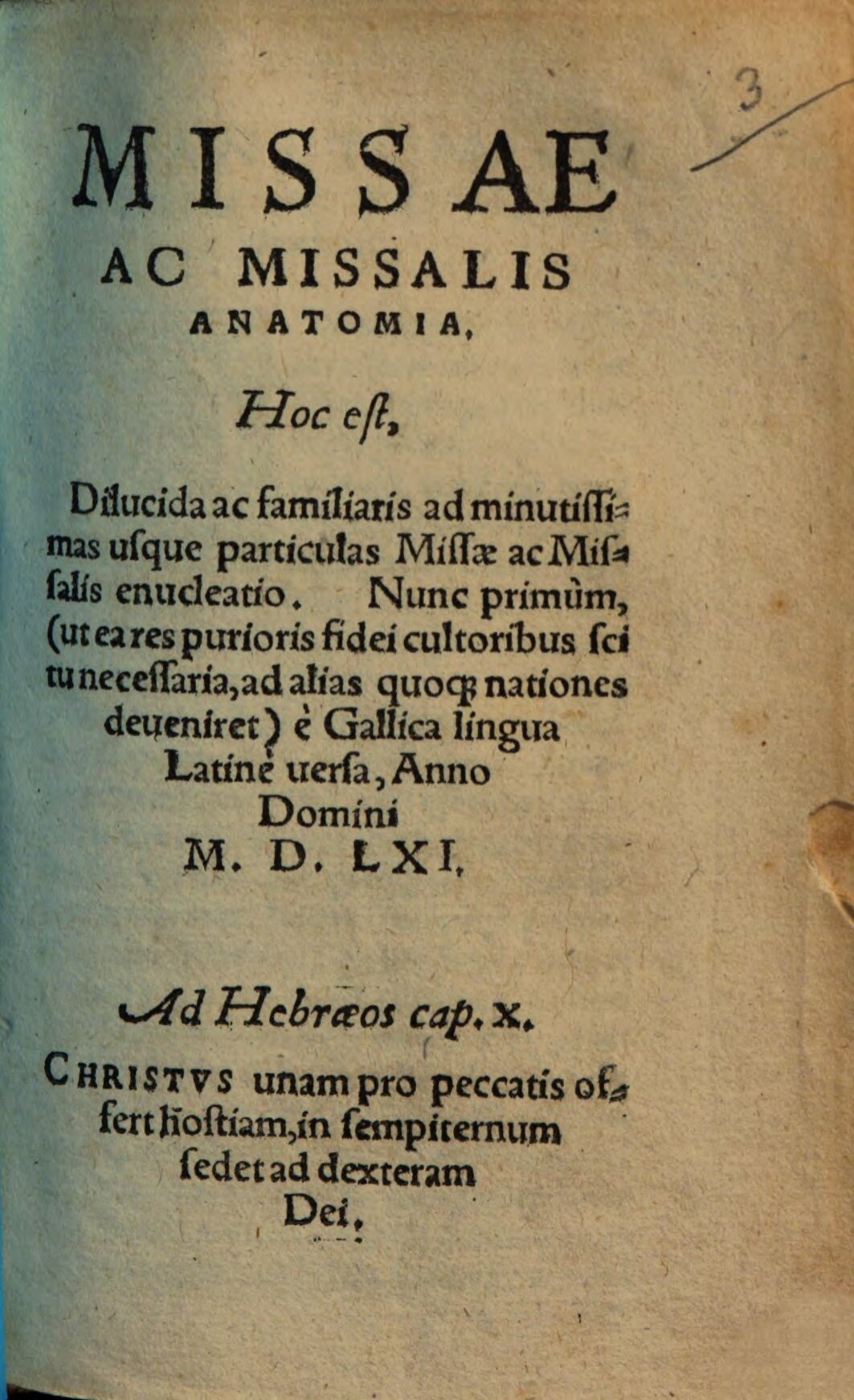 Missae ac Missalis Anatomia…). Su editor, el italiano Petrus Paulus Vergerius, obispo de Capodistria convertido al luteranismo y exiliado en Tubinga, tuvo que